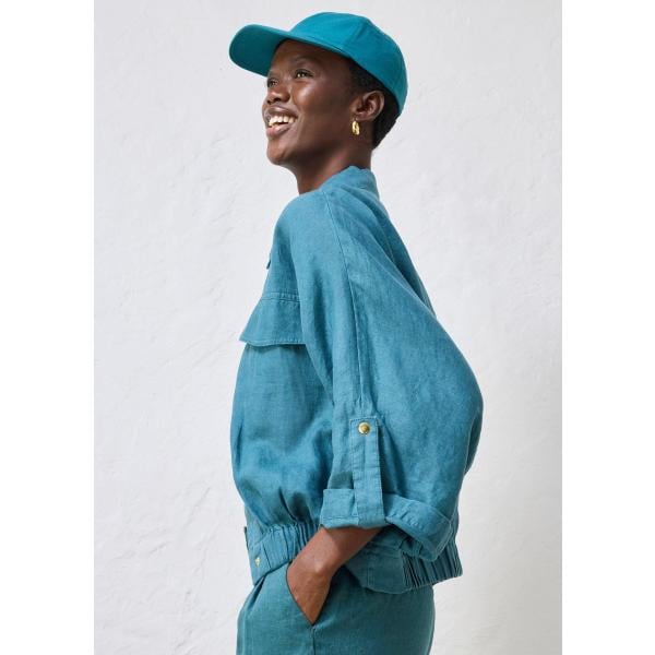 Sneakers da donna in bianco neve bonprix, Jeans da donna in verde chiaro cropped a vita alta in denim bonprix, Shopping bag da donna in blu scuro bonprix, Cappello con visiera da donna in verde chiaro bonprix, Giacca da donna in marrone scuro bonprix, Felpa da donna in blu medio bonprix.