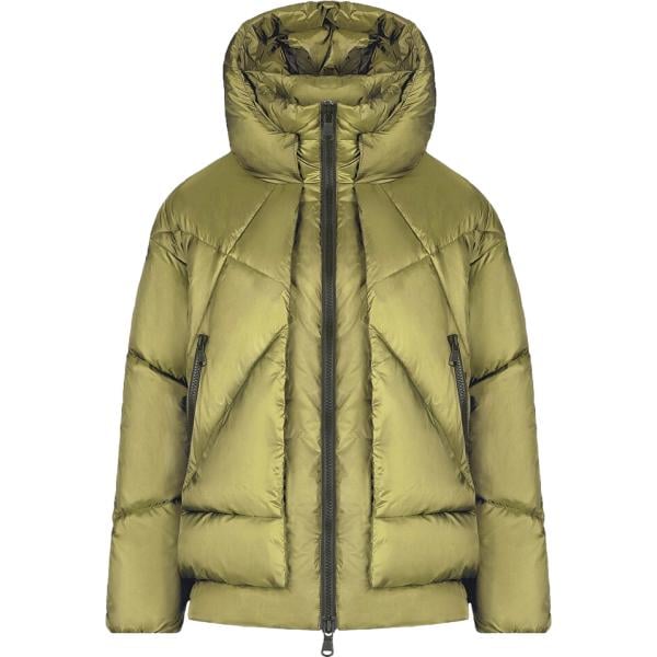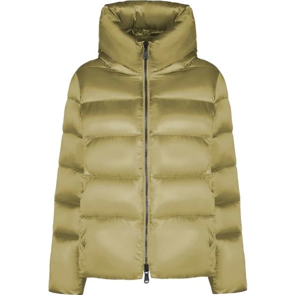 Piumino da donna in giallo scuro collo con cappuccio corto con zip in poliestere