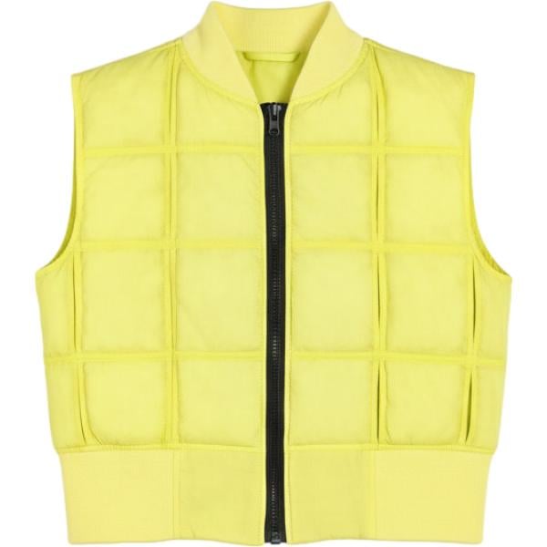 Piumino da donna in giallo chiaro lavorato a maglia senza maniche con zip in nylon