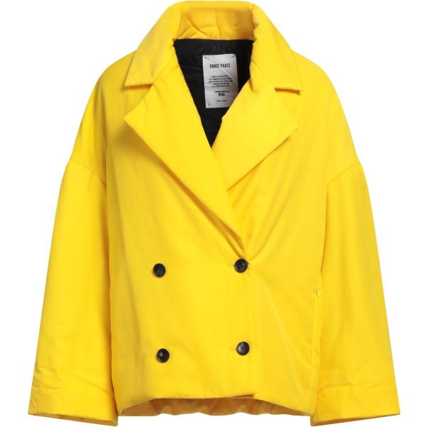 Mantella da donna in giallo chiaro collo aperto monopetto a maniche lunghe con lacci