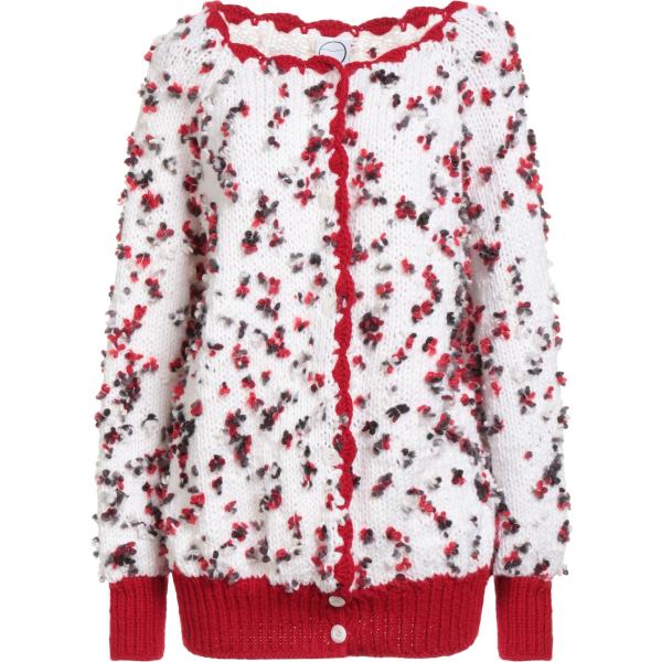 Cardigan da donna in bianco avorio con stampe lavorato a maglia collo a v a maniche lunghe Imperial