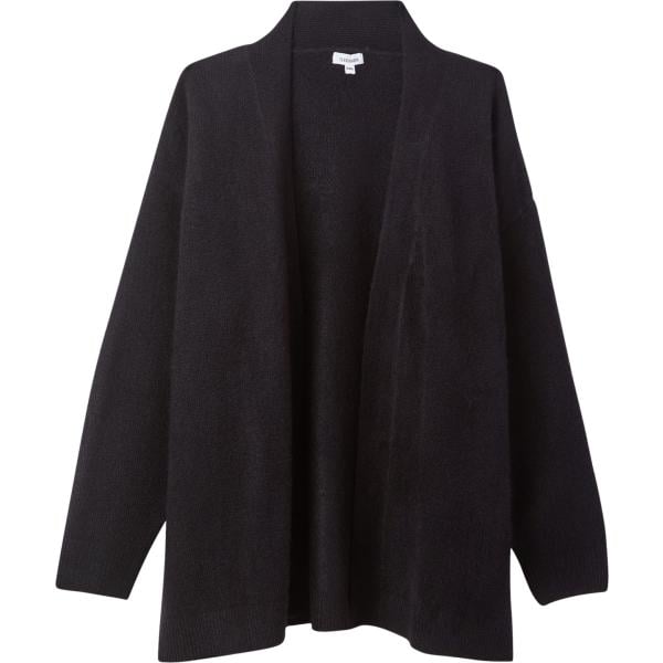 Cardigan da donna in nero pece lavorato a maglia girocollo cropped a maniche lunghe a vita alta in viscosa Rinascimento, Orecchini da donna a goccia in blu scuro in oro Lauren, Borsa a mano da donna in nero pece Rinascimento, Mocassini da donna in nero pece effetto lucido in ecopelle Marco Tozzi, Gonna longuette da donna in marrone scuro Imperial.