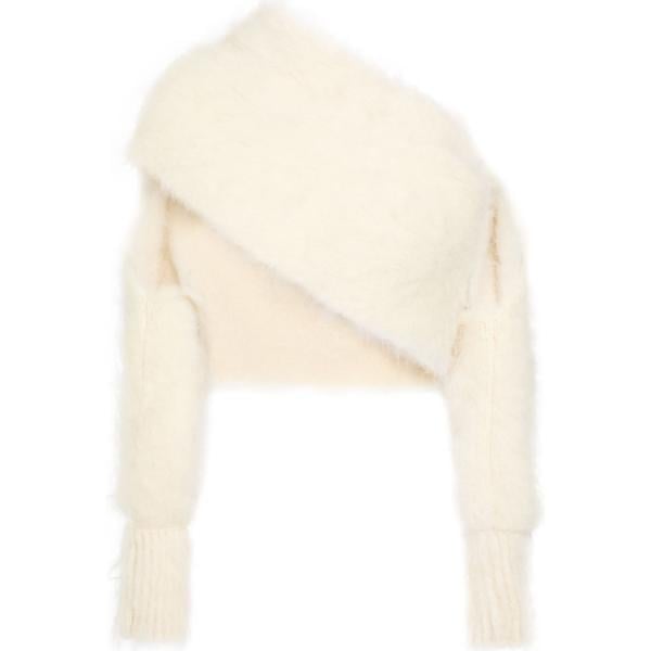 Top da donna in bianco avorio lavorato a maglia senza spalline a maniche lunghe in lana