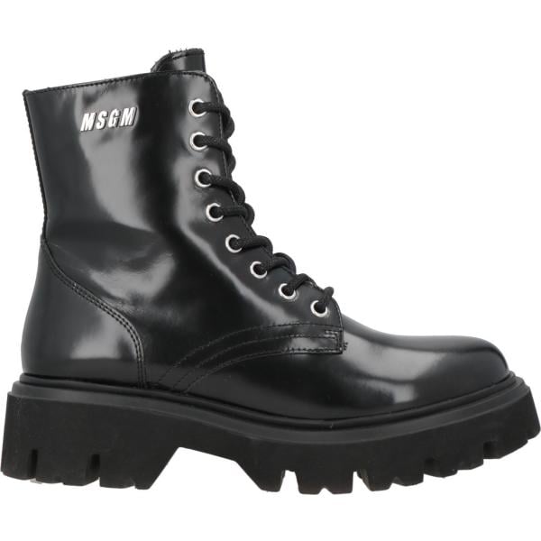 Anfibi da donna in nero pece con tacco squadrato a punta tonda con zip