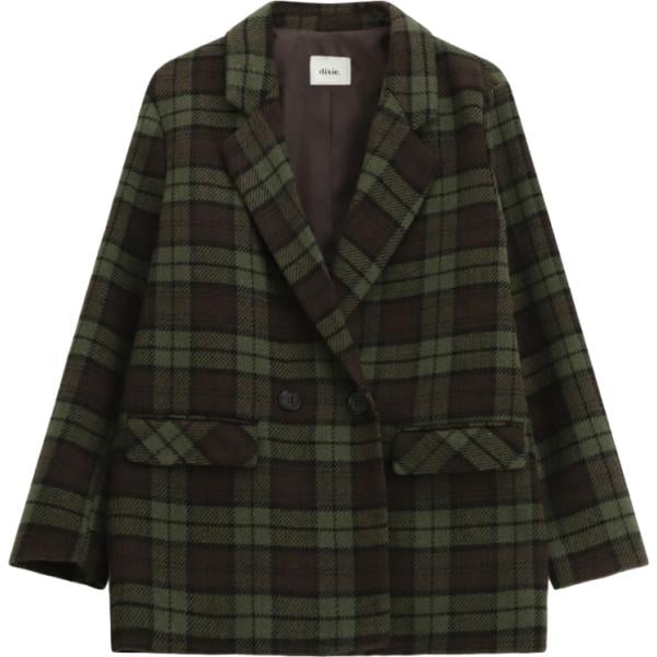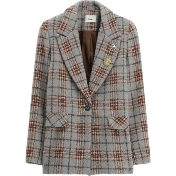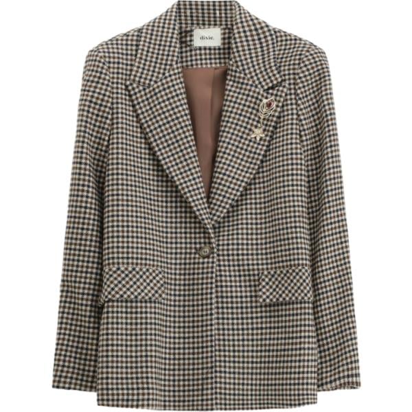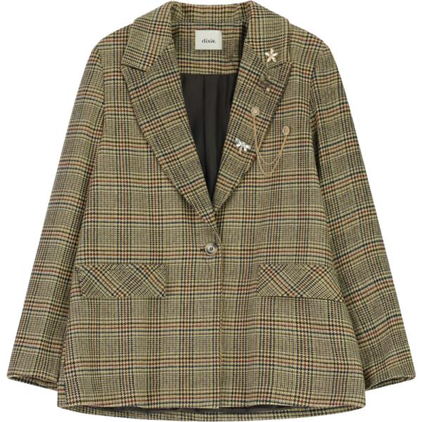 Giacca da donna in marrone chiaro a quadri collo con revers monopetto con bottoni
