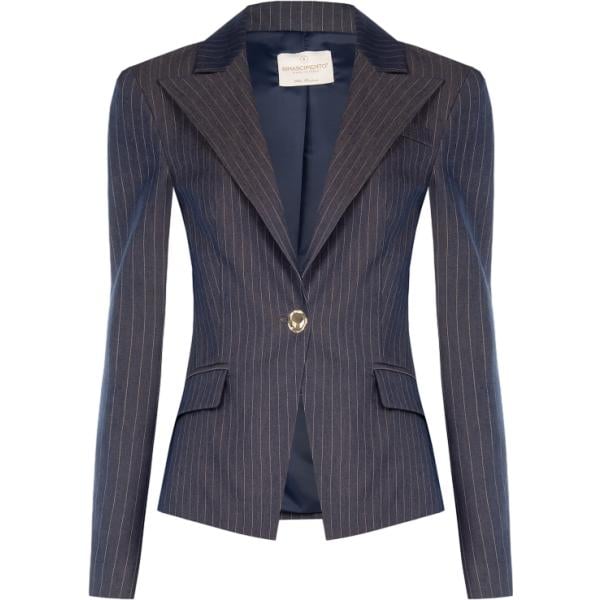 Giacca da donna in blu scuro a righe collo con revers monopetto
