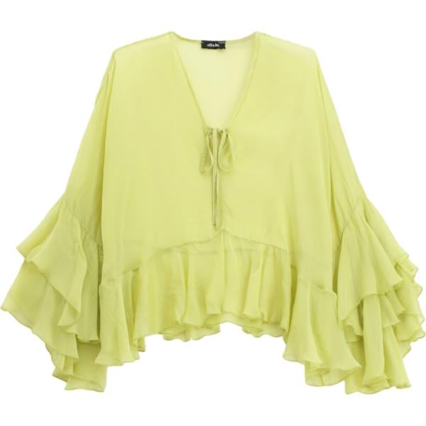 Blusa da donna in giallo chiaro con ruches cinque tasche