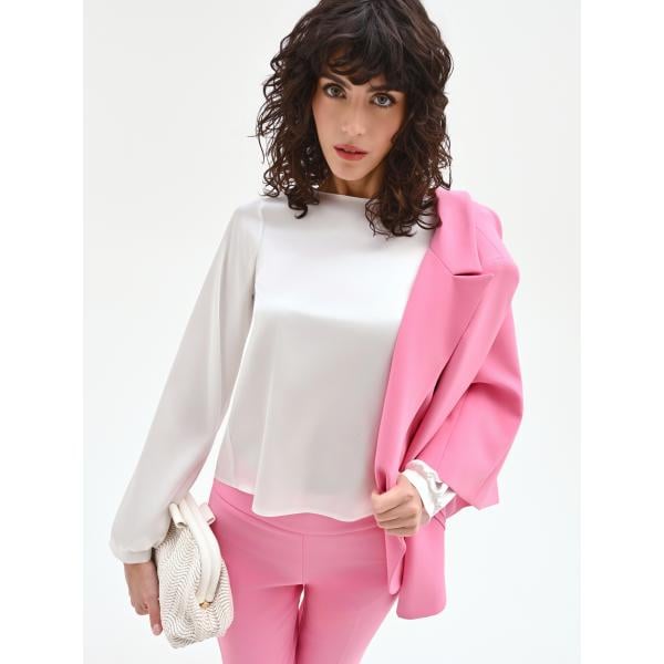 Blusa da donna in rosa scuro con scollo a maniche lunghe