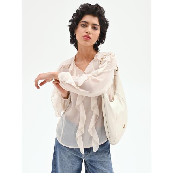 Blusa da donna intero in bianco neve con scollo a maniche lunghe