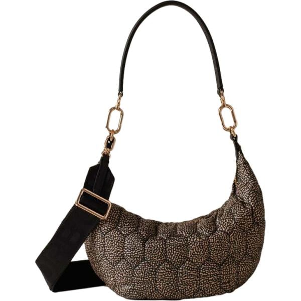 Borsa a tracolla da donna in nero pece con stampe con zip