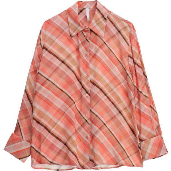Camicia da donna in arancione scuro a quadri collo classico a maniche lunghe