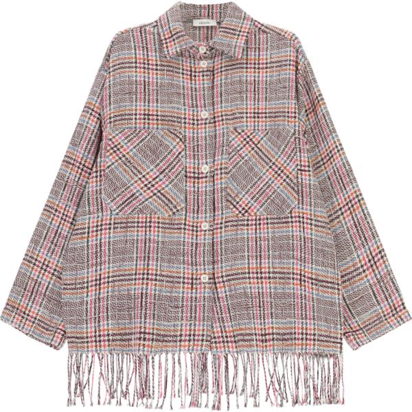 Camicia da donna in grigio chiaro a quadri con frange collo classico
