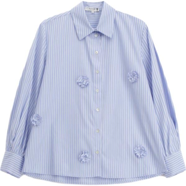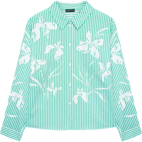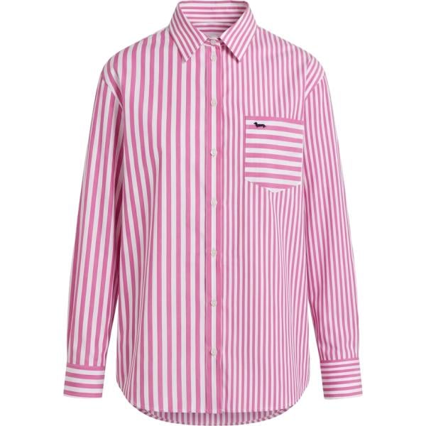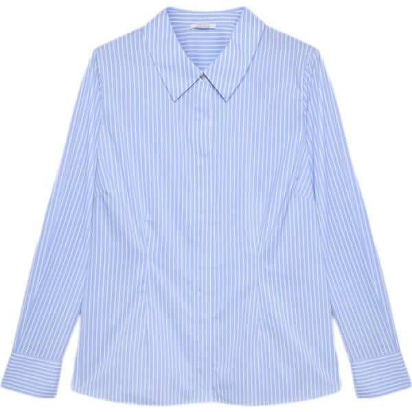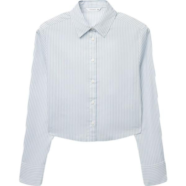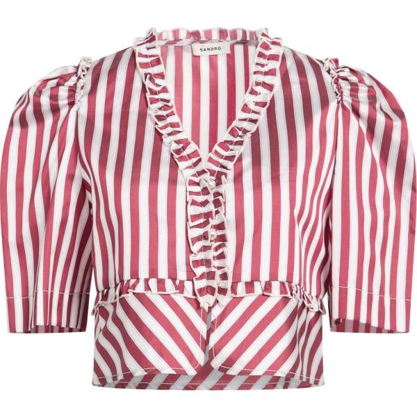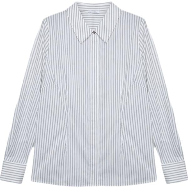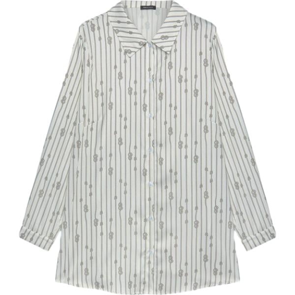 Camicia a maniche corte da donna in bianco avorio a righe a maniche corte