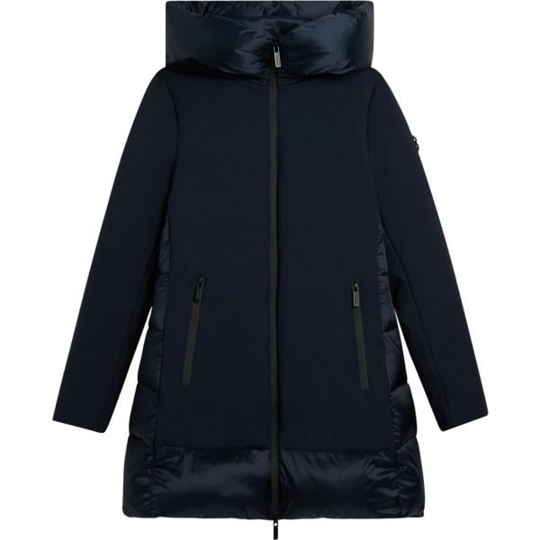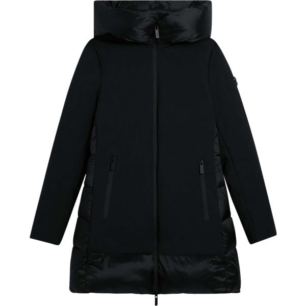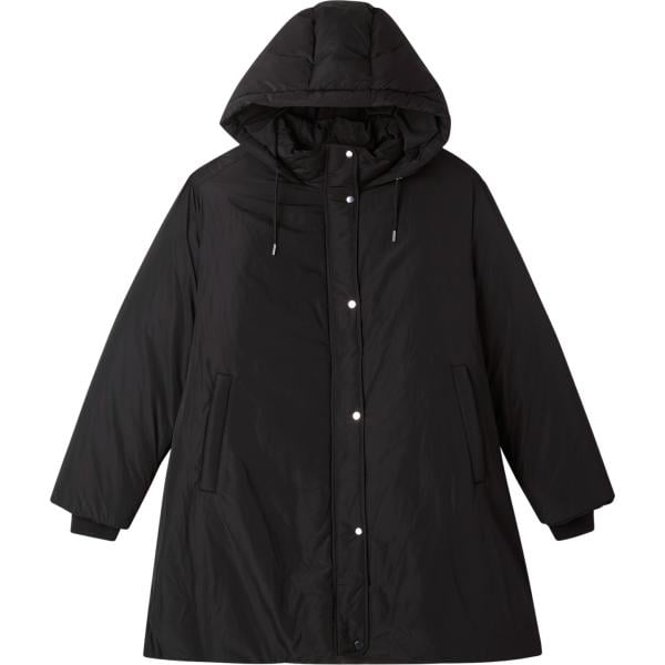 Eskimo da donna in nero pece effetto lucido collo con cappuccio lungo con zip