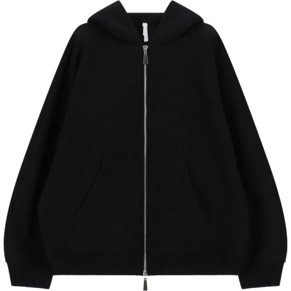 Felpa con cappuccio da donna in nero pece collo con cappuccio a maniche lunghe con zip