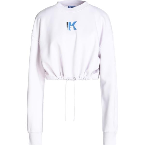 Felpa da donna in bianco neve girocollo a maniche lunghe con coulisse in plush