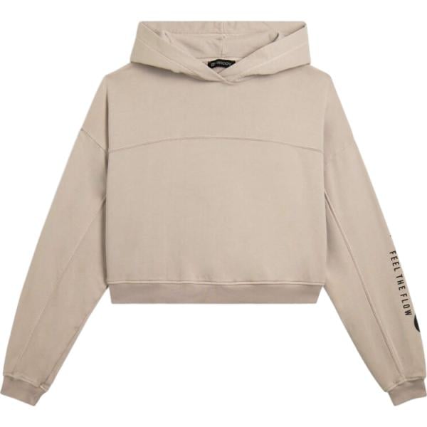 Felpa con cappuccio da donna in beige sabbia con stampe collo con cappuccio cropped
