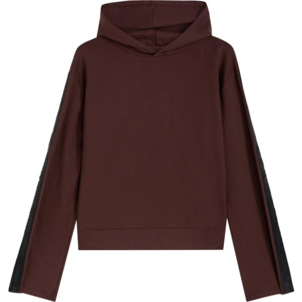 Felpa con cappuccio da donna in marrone scuro con stampe collo con cappuccio lungo a maniche lunghe in plush