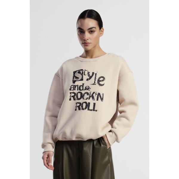 Felpa da donna oversize con stampe girocollo
