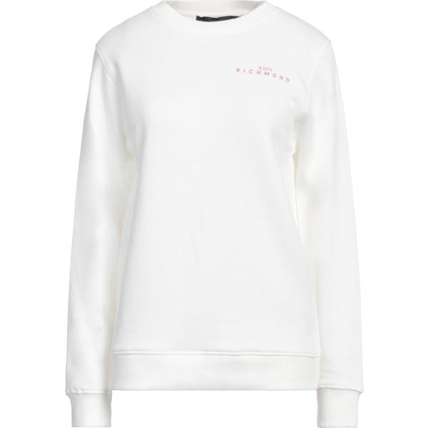 Felpa da donna in bianco avorio girocollo a maniche lunghe in cotone