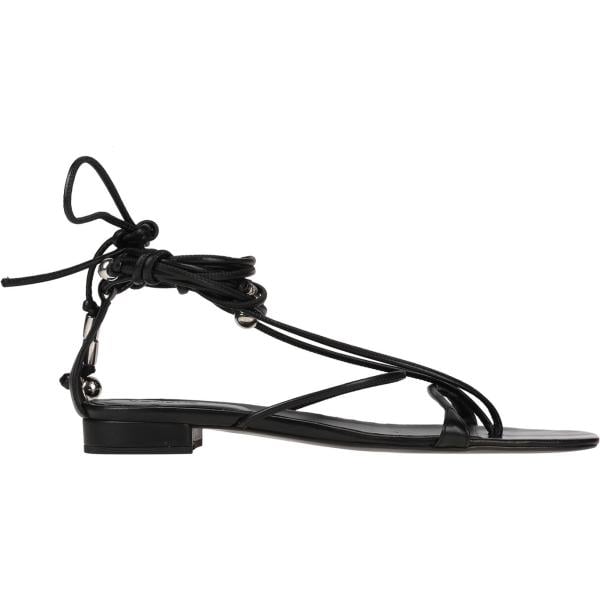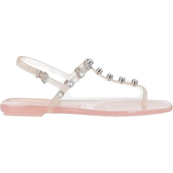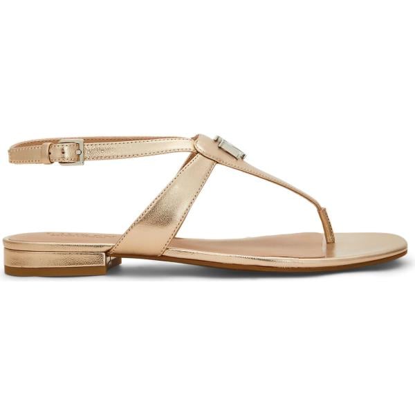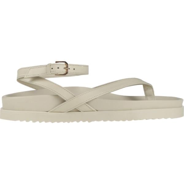 Infradito da donna in bianco neve effetto laminato senza tacco a punta tonda con cinturino in pelle