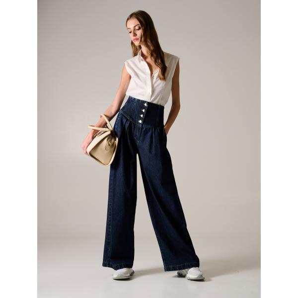 Jeans da donna in blu scuro a vita alta in denim