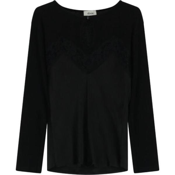 Maglione da donna a goccia in nero pece a fiori con pizzo con scollo