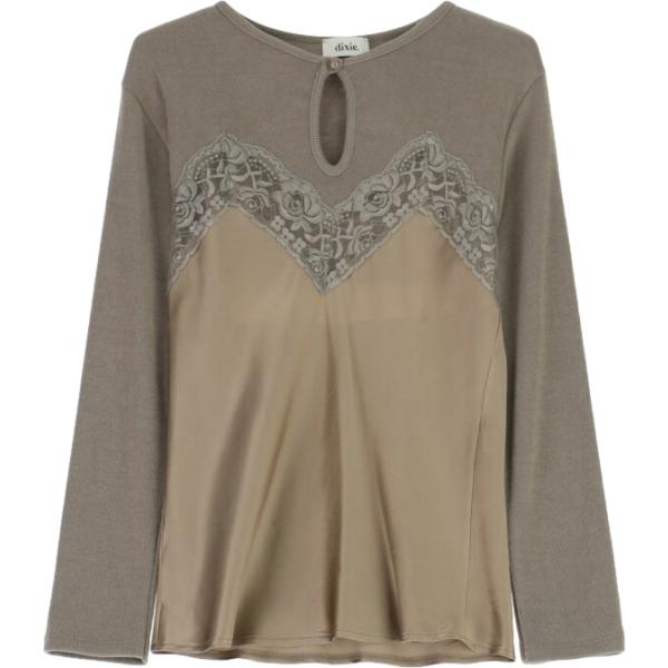 Maglione da donna a goccia in verde oliva a fiori con pizzo con scollo