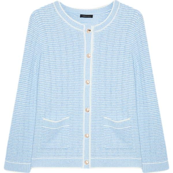 Cardigan da donna in azzurro a righe lavorato a maglia