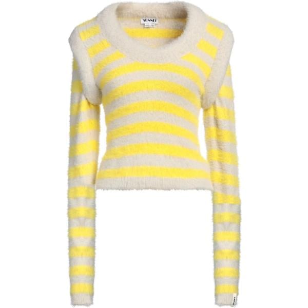 Pullover da donna in bianco avorio a righe collo aperto senza tasche a maniche lunghe