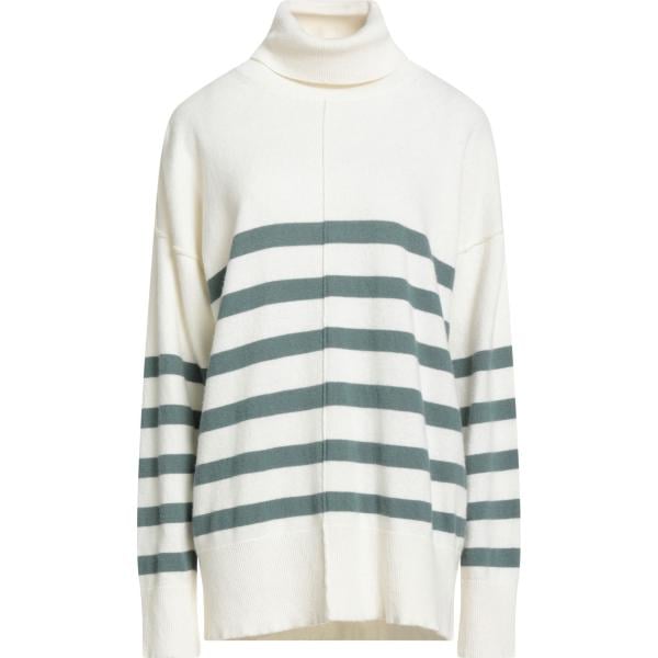 Maglione da donna in bianco neve a righe collo alto a maniche lunghe in lana