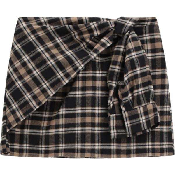 Minigonna da donna in grigio scuro a quadri plissè corto con zip in viscosa