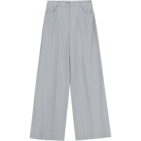 Pantaloni a palazzo da donna in grigio chiaro a righe a vita alta