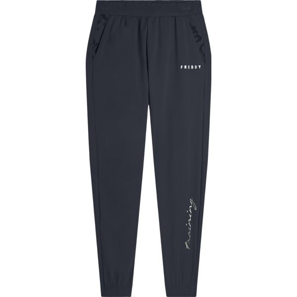 Pantaloni da donna in blu scuro con stampe in oro