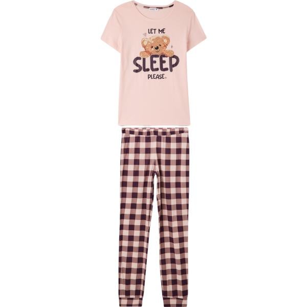 Pigiama da donna in grigio chiaro a quadri in poliestere