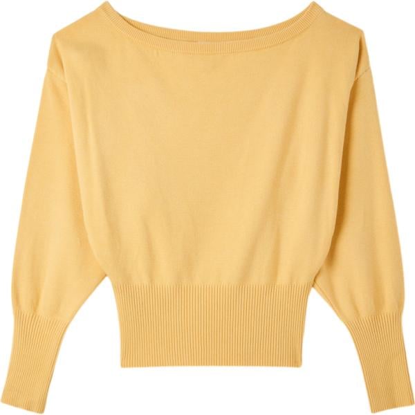 Pullover da donna in giallo chiaro collo a barchetta a maniche lunghe in viscosa
