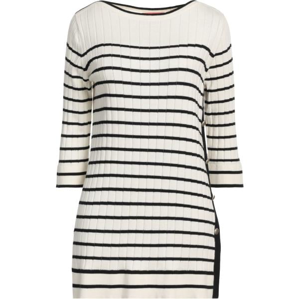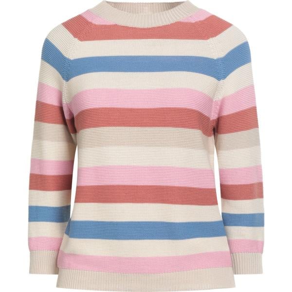 Pullover da donna in beige sabbia a righe girocollo senza tasche a maniche lunghe in viscosa