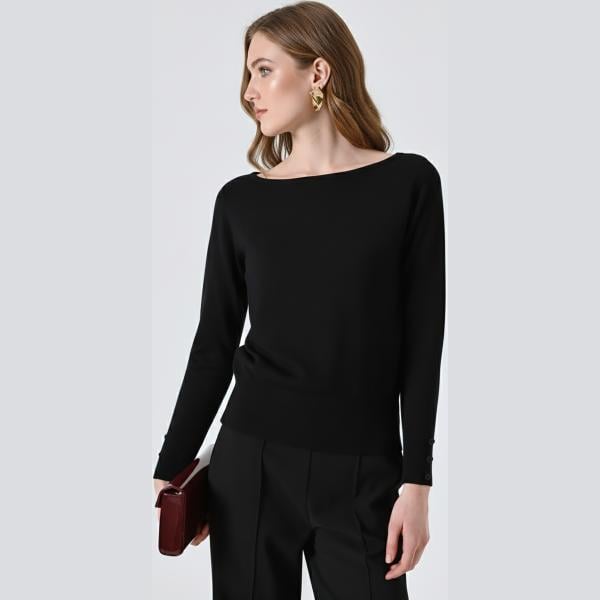 Pullover da donna in nero pece collo alto intimo a vita alta in viscosa