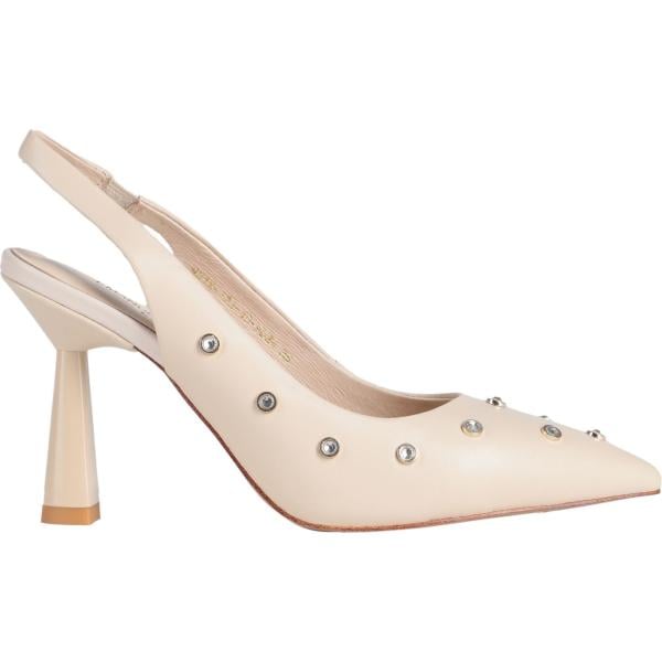 Décolleté da donna in bianco neve con tacco rocchetto a punta con cinturino in pelle