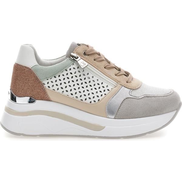 Sneakers alte da donna in beige sabbia con zip