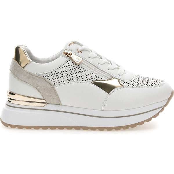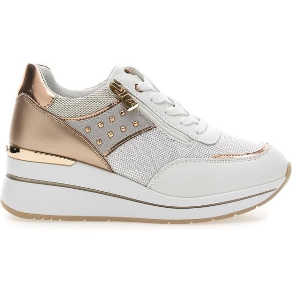 Sneakers alte da donna in bianco neve con zip in oro