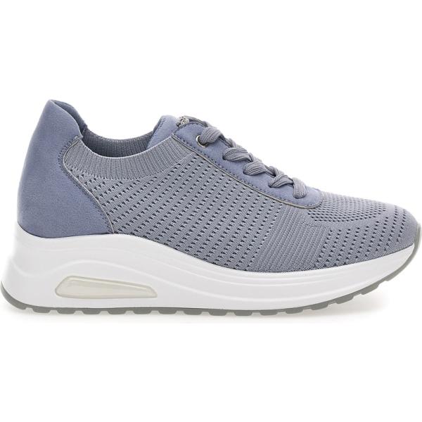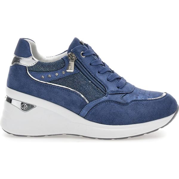 Sneakers alte da donna in azzurro con tacco zeppa