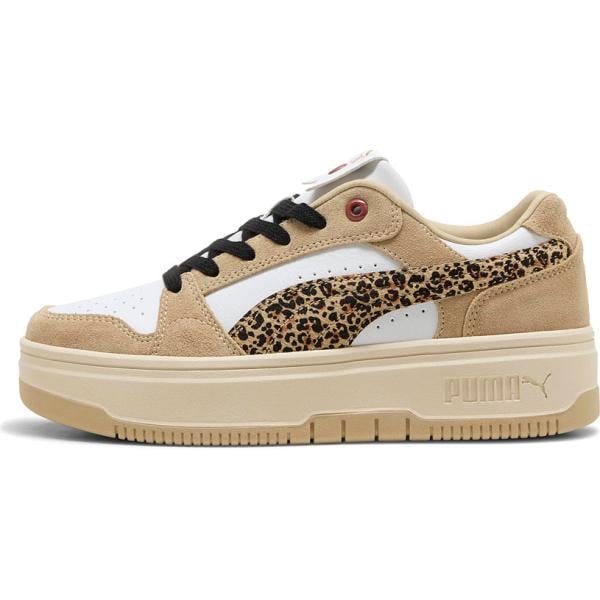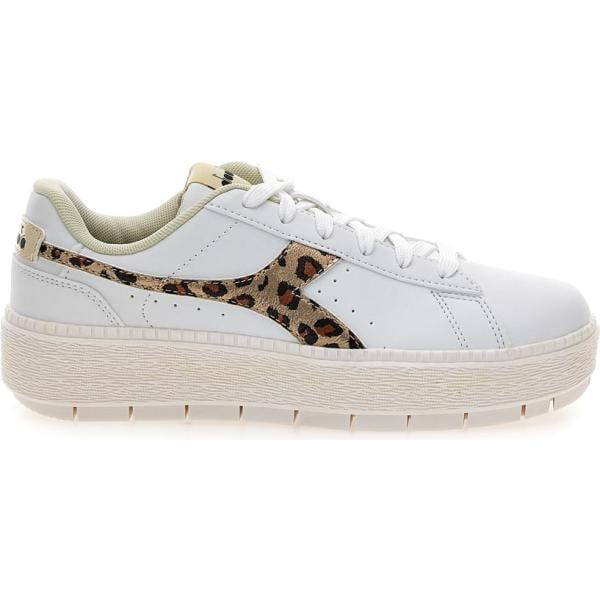 Sneakers da donna in bianco avorio animalier platform con lacci