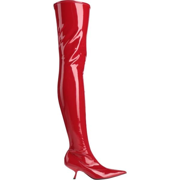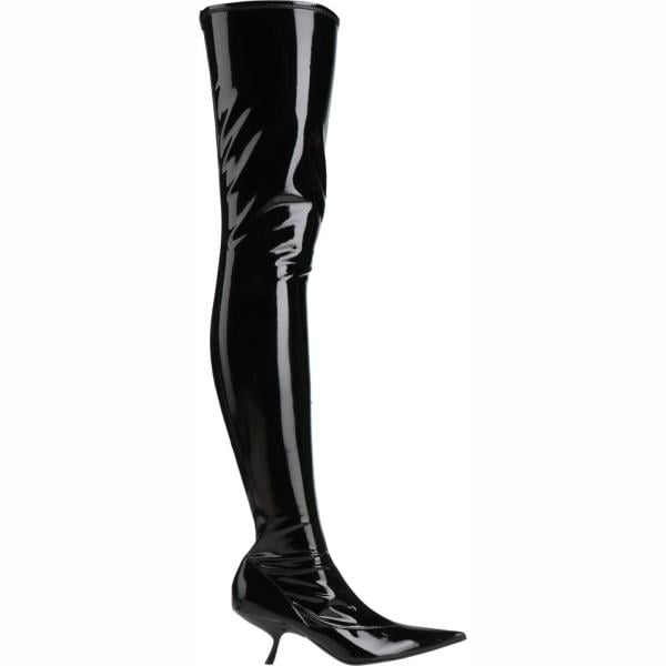 Stivali sopra il ginocchio da donna in nero pece con tacco spillo a punta