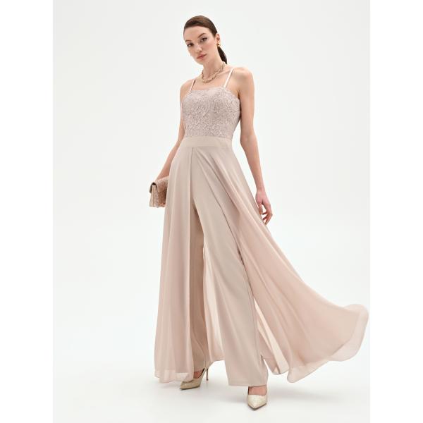 Tuta da donna in grigio scuro a fiori con pizzo con spalline con zip