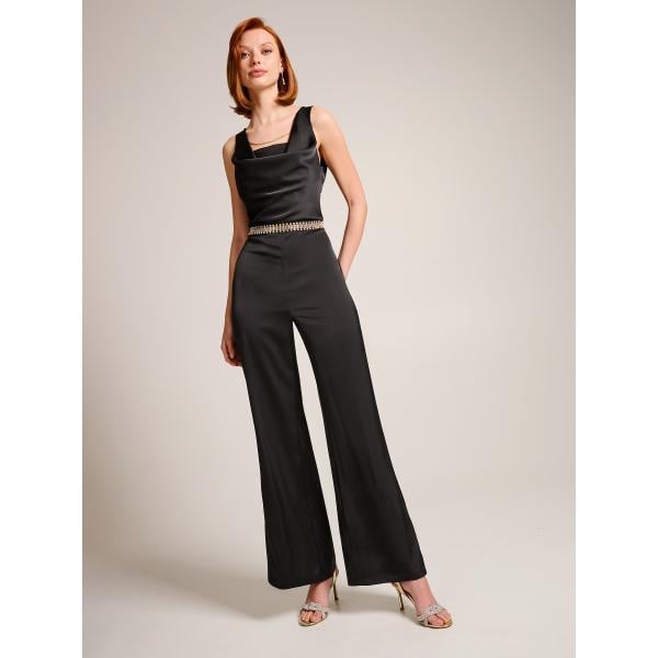 Tuta da donna in nero pece con tacco con scollo senza maniche