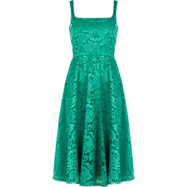 Vestito longuette/midi da donna in verde scuro a fiori con pizzo con scollo intimo con zip