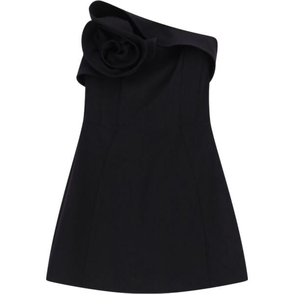 Vestito asimmetrico da donna in nero pece a fiori con scollo corto