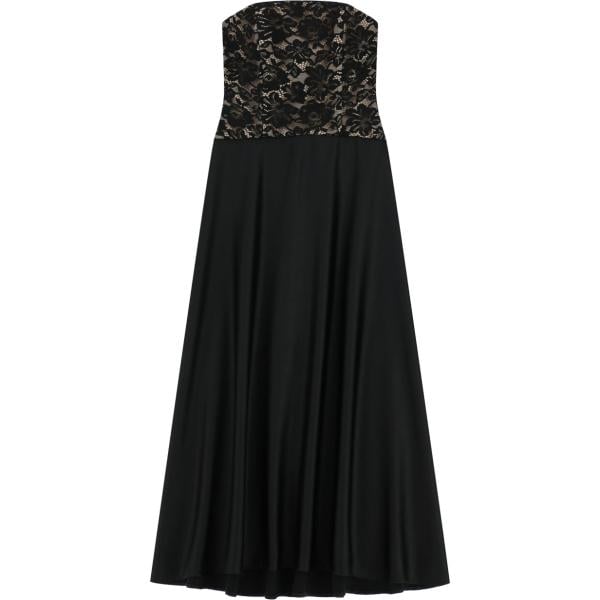 Vestito lungo da donna in nero pece a fiori con pizzo con scollo lungo