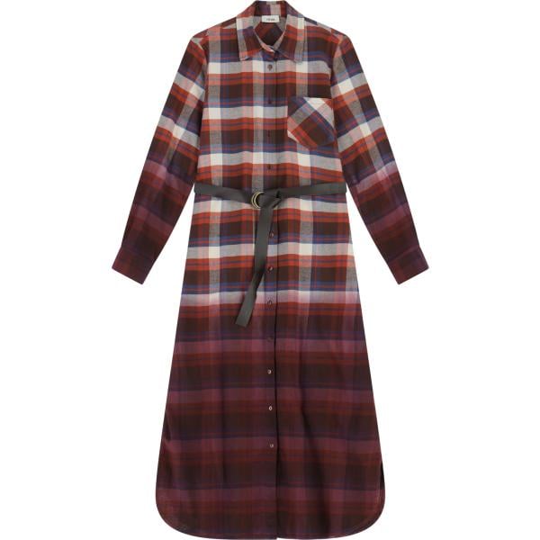 Vestito lungo da donna in marrone scuro a quadri collo classico lungo con bottoni